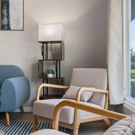 Vous pourrez dîner dans d'une cuisine complète, ainsi que dans un coin repas, proposés dans le site. Vous trouverez également une cafétière/théière électrique, un réfrigérateur et de la vaisselle pour préparer votre propre repas. La villa Blue Haven At Hines | Stylish 2Bd Stay | Peoria Heights se trouve à 1 km de The Other Dawg, où vous pourrez déguster divers repas.